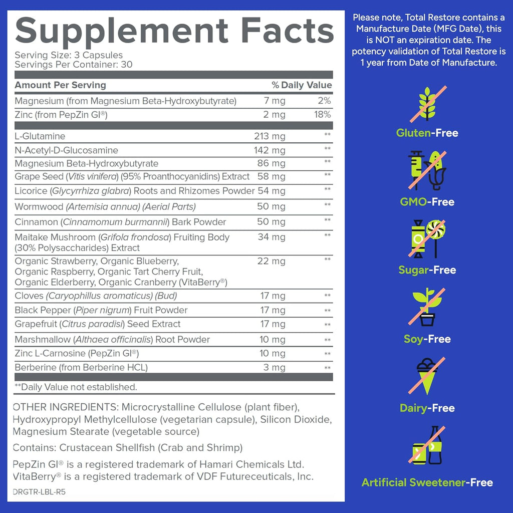 Gundry MD Total Restore Gut Lining Support, Digestive Supplement for Gastrointestinal Wellness, Gut Health Supplement, Gut Health for Women and Men, 90 Capsules, 30 Day Supply